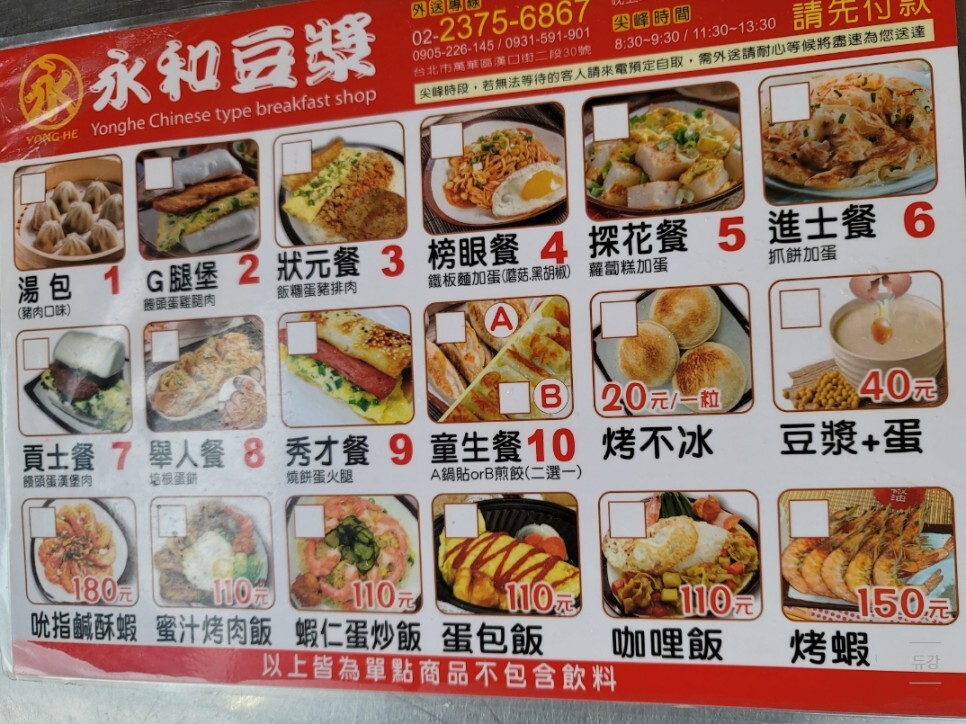 예전에는 용허또우장에 한국어 메뉴판이 없다고 했는데