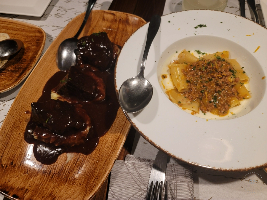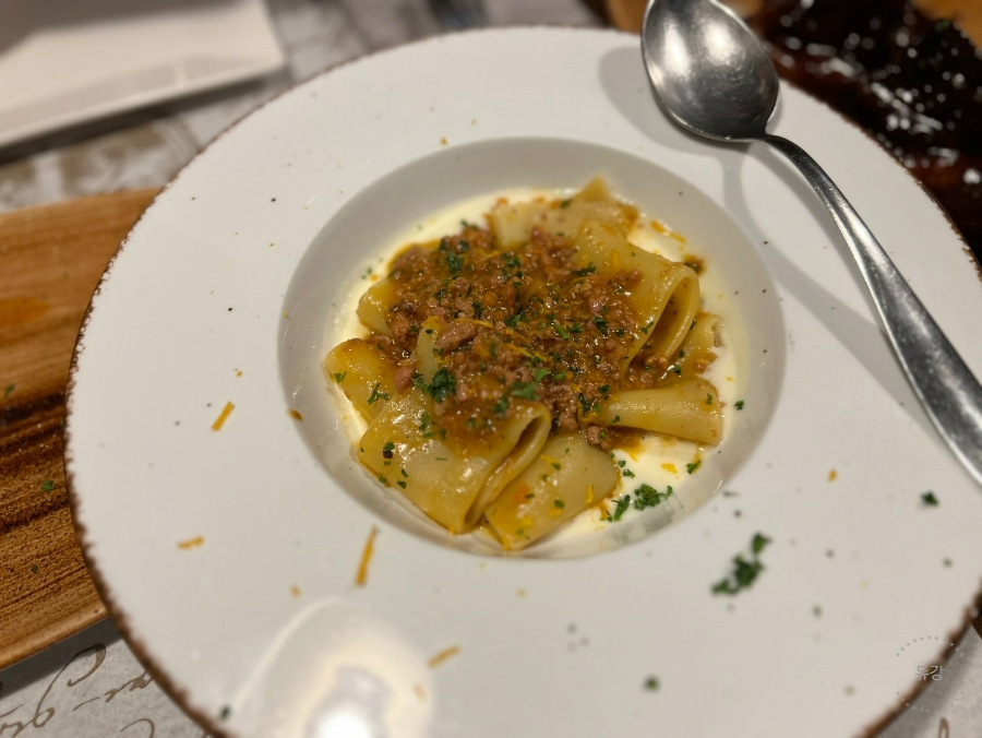 식전빵과 해산물 파스타, 라구, 소고기찜(?) 그리고 라비올리를 주문했어요